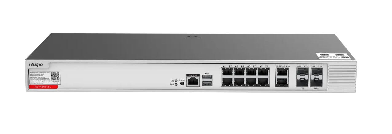 Ruijie RG-WS6012-L je vysoce výkonný bezdrátový přístupový kontrolér s rychlostí 10 Gb/s. Vhodné pro použití v hotelech, kancelářích, kampusech a nemocnicích. Ruijie RG-WS6012-L může ve výchozím nastavení spravovat až 32AP a jeho maximální kapacita je 896 AP, až 2048 AP v režimu HA (s licencí). Zařízení lze integrovat s Ruijie Cloud Service, který poskytuje bezdrátovou optimalizaci založenou na AI.